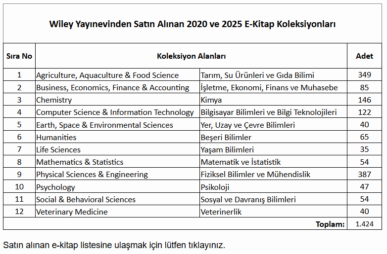 Wiley Yayınevine ait 2020 ve 2025 E-Kitap Koleksiyonları (1424 adet) Satın Alınarak Araştırmacılarımızın Erişimine Açılmıştır. 05 Ocak 2026, Pazartesi 13 kez görüntülendi